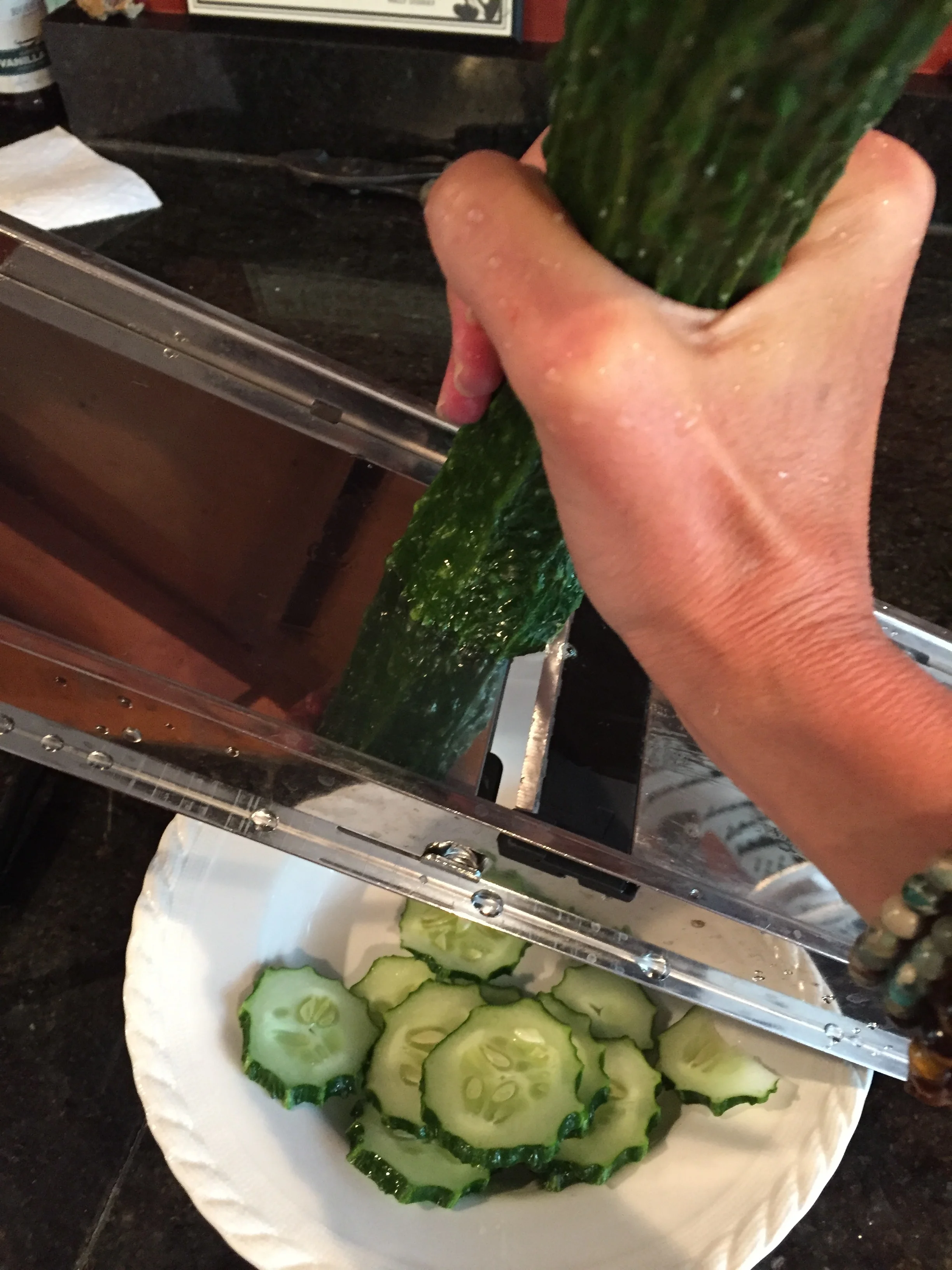 For maximum nutritional value it is recommended to slice the cucumbers and lemons into the water the night before and allow them to sit. Drink at room temperature when you first wake and then throughout the day.  Drinking at room temperature is important because ice water can be abrasive and shocking on our organs. It is always best to consume local organic fruits and vegetables whenever possible, as well.